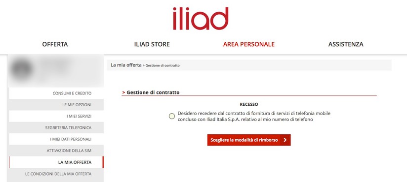 Tutte le funzioni dell'area personale iliad (iliad.it/account):
